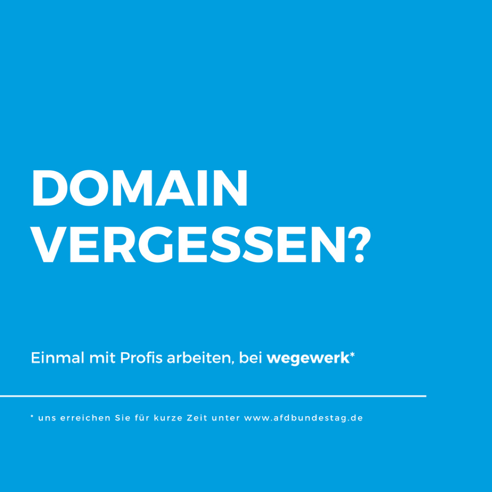 Lightbox anzeigenWenn’s wichtig ist, werden wir auch ohne Kund*innen aktiv: Nach der Bundestagswahl schnappten wir uns die Domain afd-bundestag.de, um unser Beratungspaket „Alles für den Bundestag“ zu promoten.