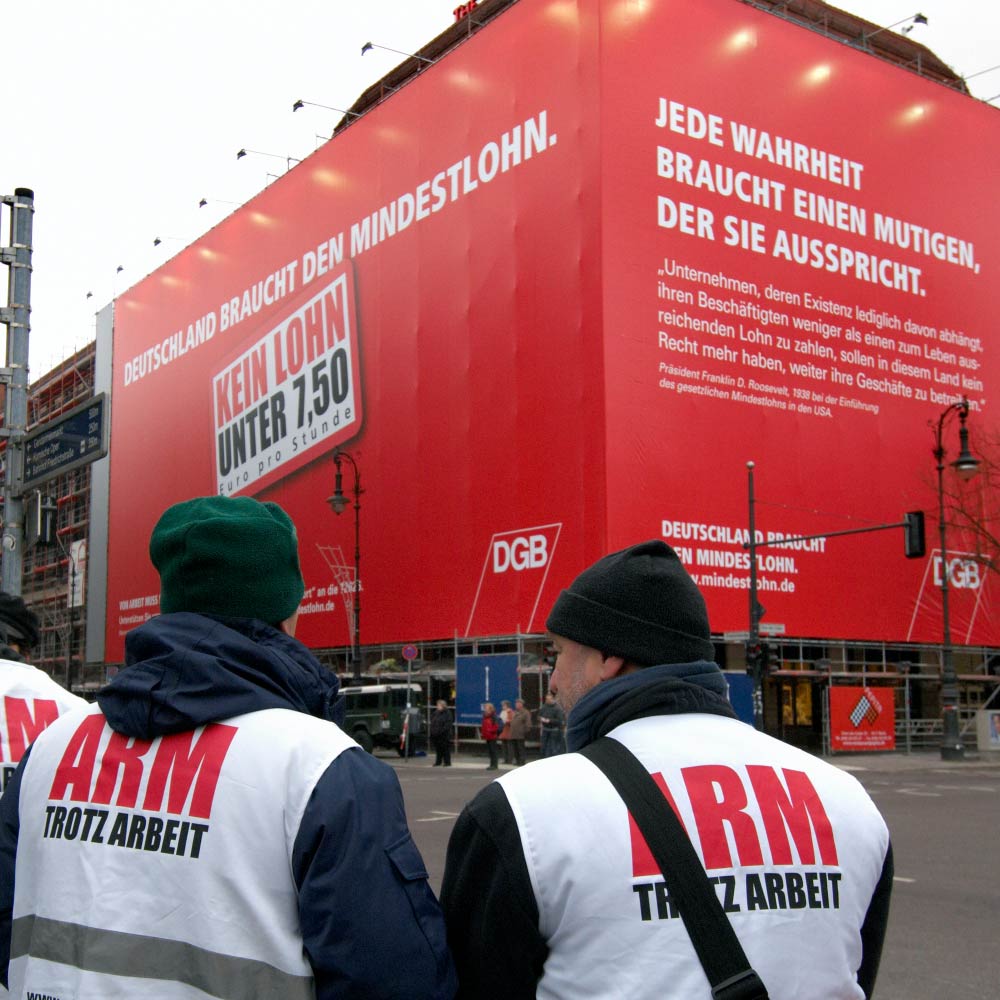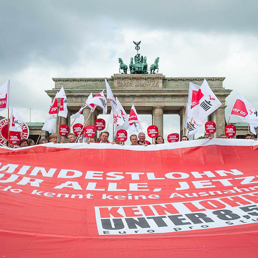 Lightbox anzeigenHart erkämpft und heute wie selbstverständlich: Sieben Jahre lang setzten wir uns mit dem Deutschen Gewerkschaftsbund für den Mindestlohn ein.
