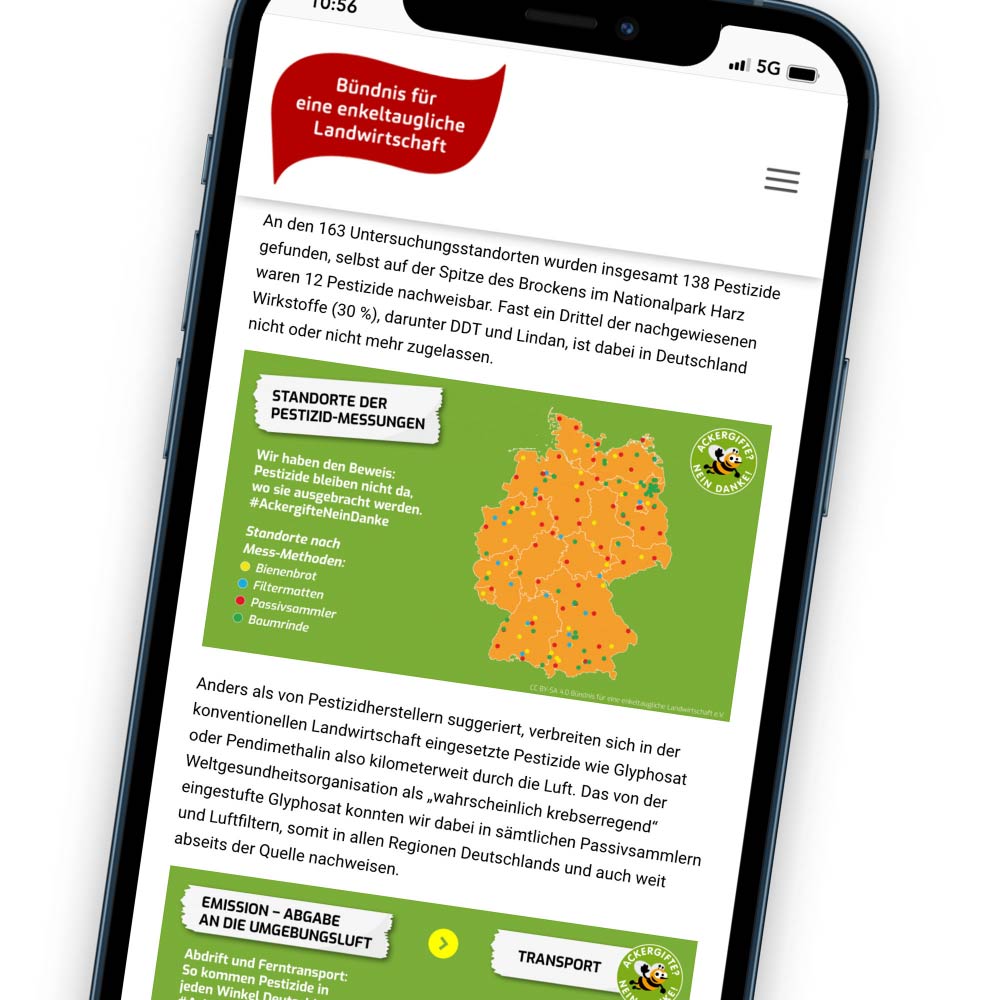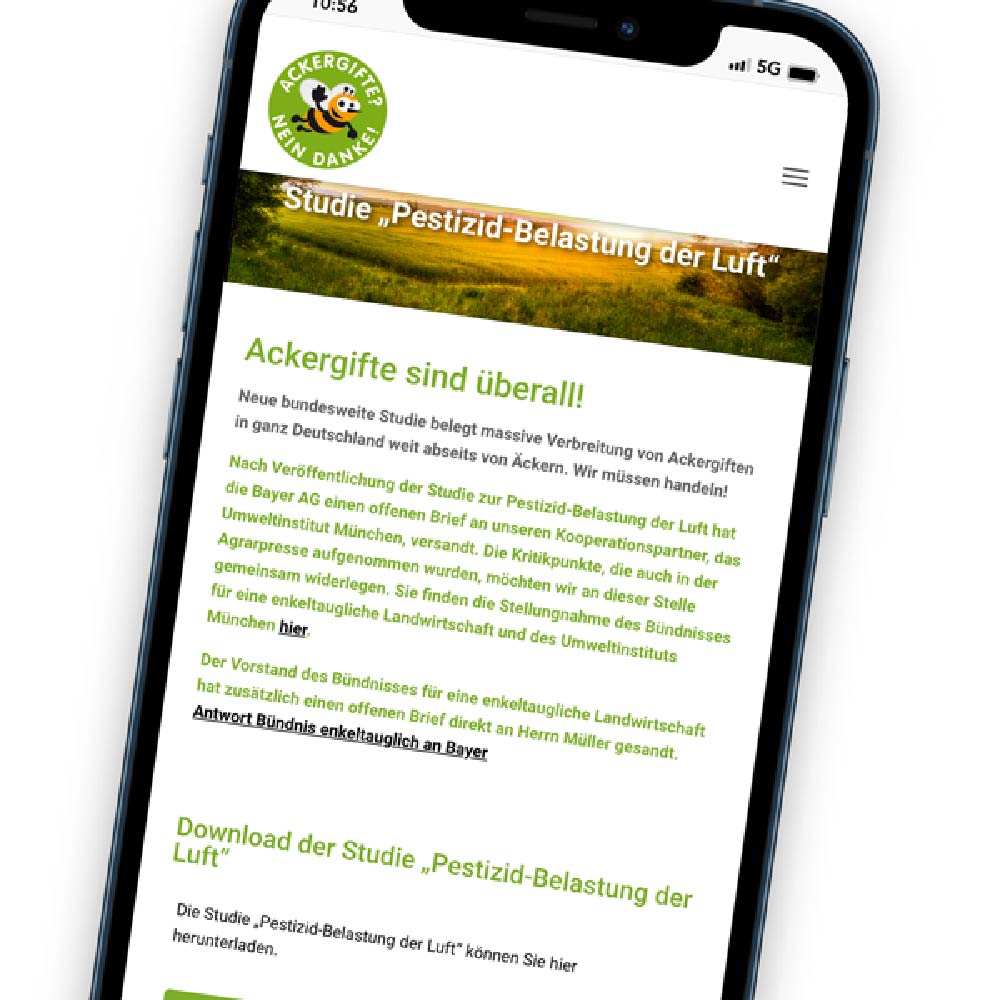 Lightbox anzeigenDas war die Skandal-Erkenntnis einer Studie der Initiative „Ackergifte? Nein Danke!“ Wir sorgten dafür, dass es nicht nur das Fachpublikum mitbekam.